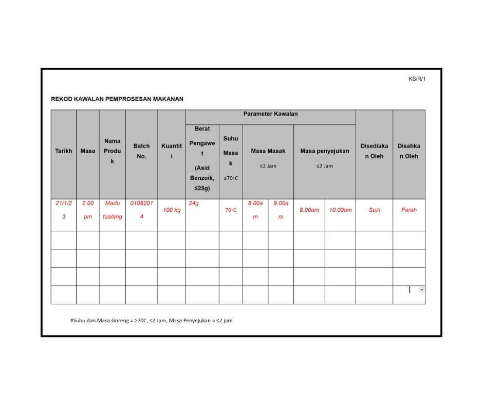 – SOP Kawalan Pemperosesan Makanan